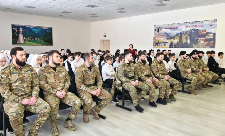 Встречу с учениками провели начальник правового отделения ОМОН «АХМАТ-1» подполковник полиции Ахдан Ахмаров, заместитель командира батальона по политической работе подполковник полиции Висхан Магомадов и старший прапорщик полиции Магомед-Хожи Джемигов.
