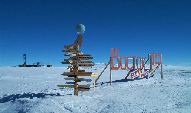 «Восток», единственная используемая Россией внутриконтинентальная антарктическая научная станция, расположена в 1253 километрах от Южного полюса и в 1260 километрах от ближайшего побережья моря. Климатические условия в районе станции — одни из тяжелейших на Земле. Именно здесь в 1983 году был зарегистрирован абсолютный минимум температуры - минус 89,2 градуса.