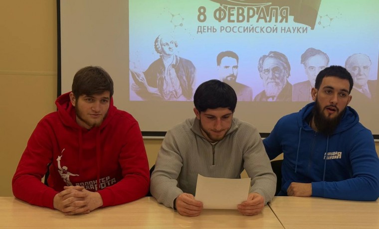 На базе биохимического факультета ЧГУ им. А.А. Кадырова Чеченское региональное отделение «Молодой Гвардии Единой России» совместно с Волонтёрской Ротой и профкомом факультета организовали онлайн-квиз, приуроченный ко Дню российской науки.
