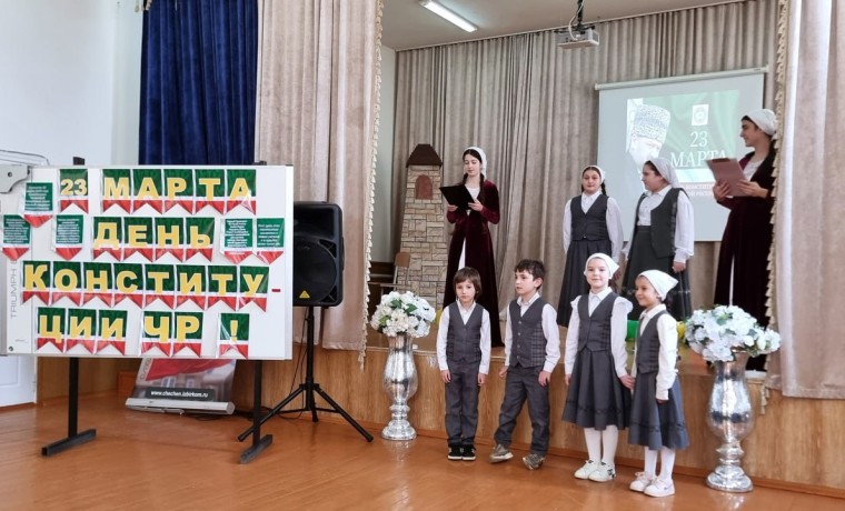 В актовом зале Гелдаганской средней школы №1 имени Героя России М.Х. Даудова прошло мероприятие, посвящённое Дню Конституции Чеченской Республики. В нём приняли участие школьники, педагоги и представители общественности.