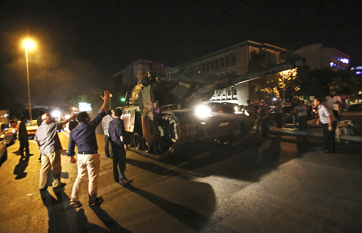 После 23 часов мировые СМИ начали сообщать о том. что в главных городах Турции введены танки и происходят перестрелки военных с полицией. Около полуночи премьер-министр Турции Бинали Йылдырым заявил в эфире местного телевидения, что происходящее в стране является попыткой военного переворота. На всей территории страны был введен комендантский час, перекрыт доступ к социальным сетям.