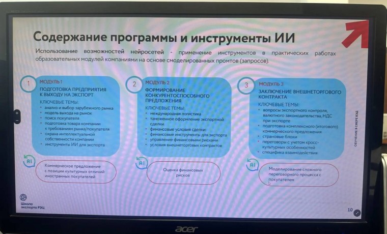 В рамках исполнения мероприятия федерального проекта «Производительность труда» (далее – Федпроект) национального проекта «Эффективная конкурентная экономика» (производительность.рф) АНО ДПО «Школа экспорта» Акционерного общества «Российский экспортный центр» (далее – Школа экспорта РЭЦ) совместно с Минэкономразвития России с 2019 года реализует образовательную акселерационную программу.