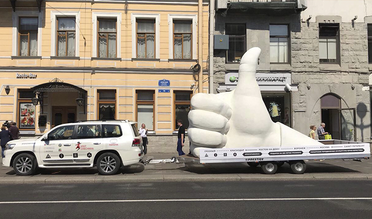 Toyota выступит официальным автомобильным партнером мероприятия: массивный арт-объект будет доставлен к месту назначения на внедорожнике Toyota Land Cruiser 200. Еще одним автомобилем для помощи организаторам станет, что символично, произведенный на заводе в Санкт-Петербурге кроссовер Toyota RAV4 — он будет выполнять роль автомобиля сопровождения.