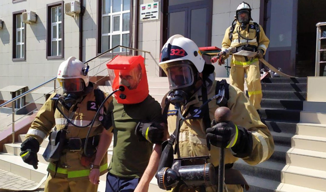 Грозненские пожарные ликвидировали учебный пожар в административном здании