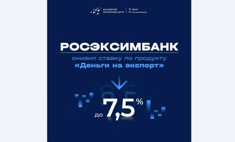РОСЭКСИМБАНК (Группа РЭЦ, ВЭБ.РФ) снизил ставку по кредиту «Деньги на экспорт» до 7,5%. Продукт доступен для оформления онлайн на цифровой платформе «Мой экспорт».