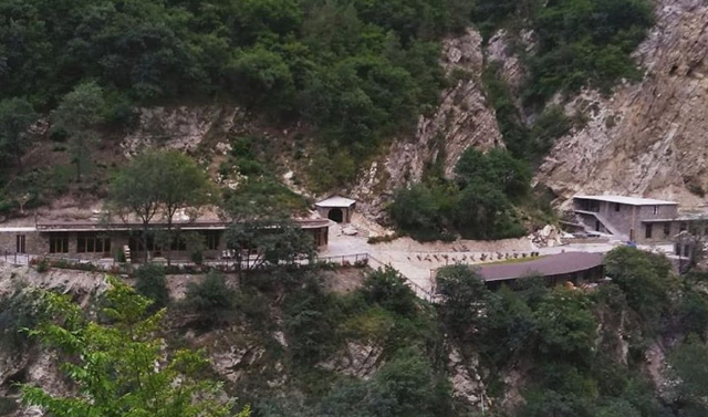 Чтобы попасть к комплексу необходимо пройти по высокому стеклянному мосту через реку Аргун.